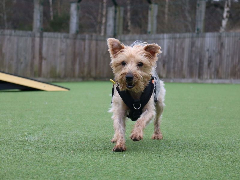 Bear is 7 year old Yorkie who is as cute as a button! He is looking for a family who have previously owned a rescue dog or a similar breed. Bear is uncomfortable with some handling and prefers his own space. Once he gets to know you, he does enjoy jumping onto your lap for snuggles and a snooze but this relationship will only come with time. He would benefit from having quiet places around the home to retreat to if feeling overwhelmed. Although Bear enjoys socialising with other dogs on his walks, he would prefer to have the home to himself. He would also love to have his own private garden that can be accessed straight from the home that has a 5ft minimum fence. Bear will need to be kept on lead whilst out in public due to his high prey drive and worried behaviour. He would also be looking for any children in the home or visiting to be 16 years and over and he would benefit from a quiet home with limited visitors. Bear has enjoyed some time in foster where he is a great companion, house-trained and we've discovered that he likes to help with jigsaws and/or reading books!